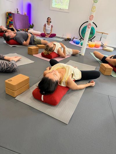 I offer Yin Yoga and Sound Healing sessions for corporate groups, designed to help your staff slow down, breathe deeply and reset – even in the middle of a busy workday.